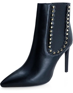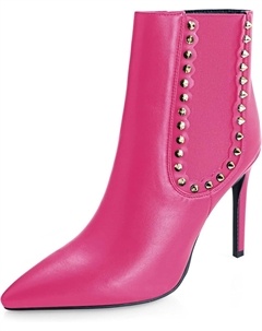 Женские модные ботильоны с острым носком, шпилькой, из искусственной кожи с заклепками, удобным высоким каблуком, боковой эластичной молнией и платьевым дизайном на щиколотке, Rose Matte