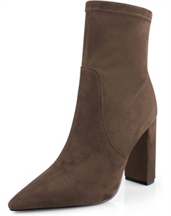 Женские элегантные ботильоны с высоким широким каблуком, заостренным носком, из искусственной замши, с удобным массивным каблуком и боковой молнией, для нарядного образа, Brown