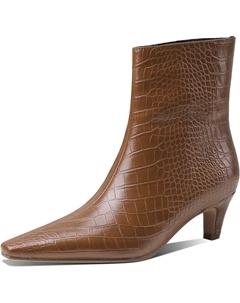 Женские модные ботильоны с заостренным носком, с тиснением под аллигатора, из кожи, с удобным низким каблуком-киссетом, Brown Alligator