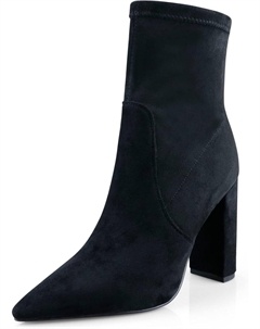 Женские элегантные ботильоны с высоким широким каблуком, заостренным носком, из искусственной замши, с удобным массивным каблуком и боковой молнией, для нарядного образа, Black