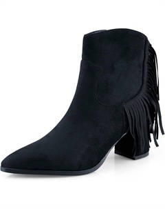 Женские элегантные ботильоны с низким массивным каблуком, заостренным носком, имитацией замши, бахромой, удобным блочным каблуком и боковой молнией для офиса, Black