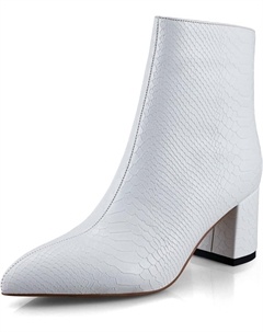 Женские модные ботильоны с низким массивным каблуком, заостренным носком, из искусственной кожи под змеиную кожу, удобные для торжественных случаев, White