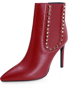 Женские модные ботильоны с острым носком, шпилькой, из искусственной кожи с заклепками, удобным высоким каблуком, боковой эластичной молнией и платьевым стилем, Wine Matte