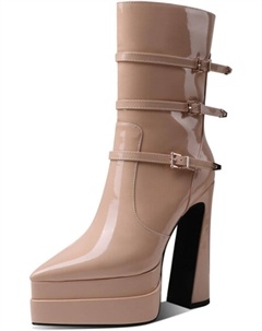 Женские модные ботильоны на высоком массивном каблуке с двойной платформой, из лакированной кожи, с заостренным носком, ремешком с пряжкой и боковой молнией для женщин, Nude Patent