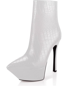 Женские сексуальные ботильоны на высокой платформе и шпильке с острым носком, модные кожаные с тиснением под крокодила и боковой молнией, обувь для платьев для женщин, White