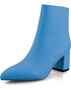 Женские модные ботильоны с низким массивным каблуком, заостренным носком, из искусственной кожи под змеиную кожу, удобные для торжественных случаев, Blue