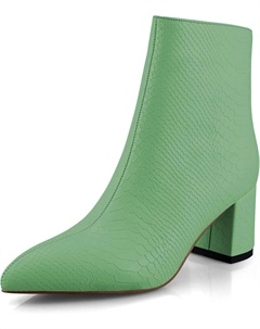 Женские модные ботильоны с низким массивным каблуком, заостренным носком, из искусственной кожи под змеиную кожу, удобные для торжественных случаев, Green
