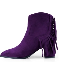 Женские элегантные ботильоны с низким массивным каблуком, заостренным носком, имитацией замши, бахромой, удобным блочным каблуком и боковой молнией для офиса, Purple
