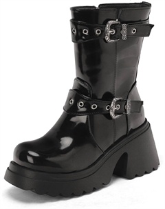 Женские ботильоны Platform на платформе, с молнией, круглый носок, байкерские ботинки с пряжкой, мотоботинки, Black Fleece-Lined