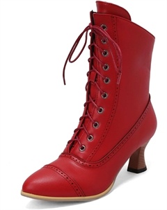 Женские ботинки в викторианском стиле, винтажные ботинки, ренессансная ведьма, ботильоны, 70-е годы, шнурованные ботинки, низкий каблук с молнией, Rot/Ausflug, Einfarbig (Getaway Solids)