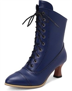 Викторианские ботинки для женщин, винтажные бабушкины ботинки, ренессансные ботильоны ведьмы, ботильоны 70-х на шнуровке с низким каблуком и молнией, Royal Blue