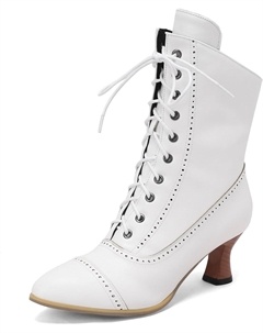 Женские ботинки в викторианском стиле, винтажные ботинки, ренессансная ведьма, ботильоны, 70-е годы, шнурованные ботинки, низкий каблук с молнией, Weiss/Opulenter Garten