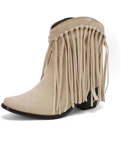 Женские ковбойские ботильоны с бахромой, короткие ковбойские сапожки с бахромой и кисточками, замшевые ботильоны на массивном каблуке, Beige