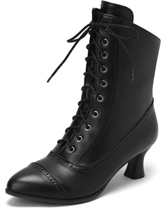 Викторианские ботинки для женщин, винтажные бабушкины ботинки, ренессансные ботильоны ведьмы, ботильоны 70-х на шнуровке с низким каблуком и молнией, Black