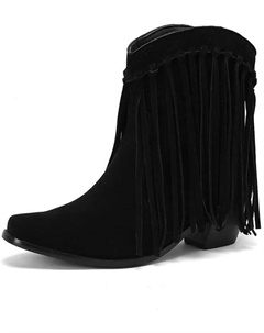 Женские ковбойские ботильоны с бахромой, короткие ковбойские сапожки с бахромой и кисточками, замшевые ботильоны на массивном каблуке, Black