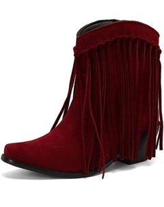Женские ковбойские ботильоны с бахромой, короткие ковбойские сапожки с бахромой и кисточками, замшевые ботильоны на массивном каблуке, Burgundy