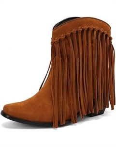 Женские ковбойские ботильоны с бахромой, короткие ковбойские сапожки с бахромой и кисточками, замшевые ботильоны на массивном каблуке, Brown