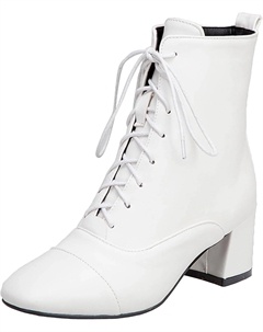 Женские ботильоны на шнуровке с массивным каблуком, квадратным носком, высоком толстом каблуке, ботинки в стиле «комбат» с молнией, короткие ботильоны, White