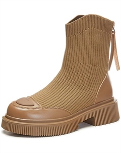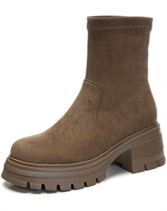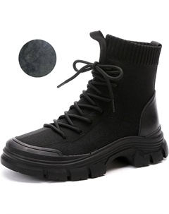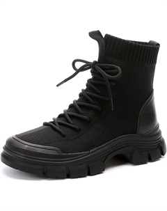 Женские ботильоны на шнуровке, модные платформенные ботинки, универсальные осенние повседневные ботинки-носки с грубой подошвой на высоком каблуке, короткие, черные, размер 36