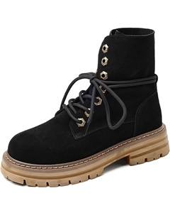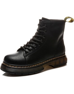 Женские ботильоны на шнуровке, модные платформенные ботинки - натуральная кожа, толстая подошва, повседневные женские ботинки на осень, стиль милитари, черные-38