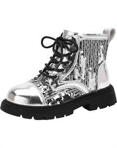 Ботинки для девочек на шнуровке, короткие с блестками, боковая молния, низкий массивный каблук, демисезонные ботильоны для осени, зимы и весны, водонепроницаемые, с нескользящей подошвой, Red