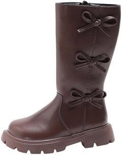 Девочкам высокие сапоги до икры с бантом, длинные винтажные боевые ботильоны, мягкая подошва, противоскользящие, повседневные, для прогулок и снега, Brown