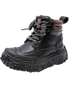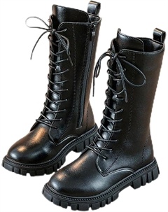 Девочкам кожаные ботинки с шнуровкой, боевые, для верховой езды, с боковой молнией, в стиле панк/гот, с рифленой подошвой, противоскользящие, ковбойские ботильоны, 4-12 лет, Black