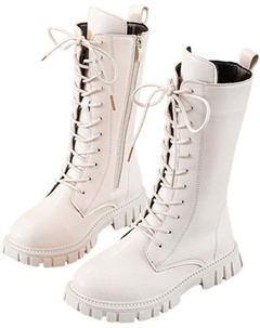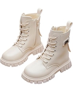 Девочкам кожаные ботинки с шнуровкой, боевые, для верховой езды, с боковой молнией, в стиле панк/гот, с рифленой подошвой, противоскользящие, ковбойские ботильоны, 4-12 лет, White