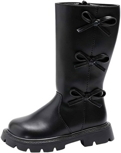 Девочкам высокие сапоги до икры с бантом, длинные винтажные боевые ботильоны, мягкая подошва, противоскользящие, повседневные, для прогулок и снега, Black