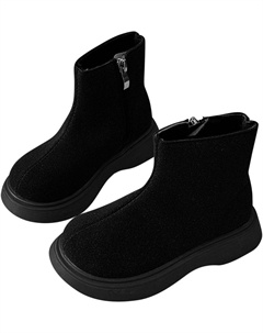 Девочкам Винтажные Ботильоны на Молнии Сбоку Челси Осень Зима Комфортные Короткие Ботинки, Black