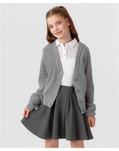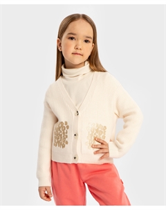 Кардиган теплый вязаный на пуговицах с принтом молочный для девочки