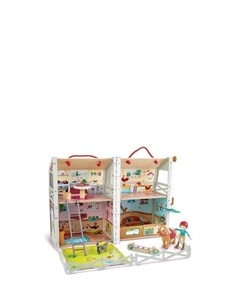 Для малышек хорошо подойдёт простой, прочный вариант домика для куклы, который можно ронять, пробовать «на зубок», часто собирать и разбирать.