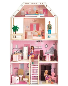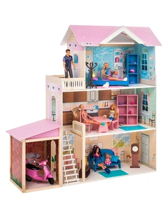 Жилище для куклы представляет собой мини-копию самого настоящего жилого дома. Его функции при этом не только развлекательные, но и образовательные, ведь малышка может наглядно видеть устройство жилища, изучать названия того или иного предмета, а также техники для кухни и других комнат.