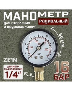 Манометр, радиальный, диаметр корпуса 50 мм, 16 бар, 1/4