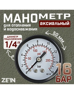 Манометр, аксиальный, диаметр корпуса 50 мм, 16 бар, 1/4