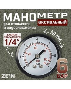 Манометр, аксиальный, диаметр корпуса 50 мм, 6 бар, 1/4