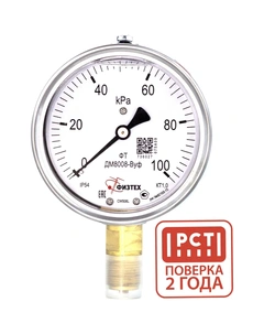 Манометр виброустойчивый ДМ8008-ВУф 0-100 кПа, кт1.0, d100, IP54 G,1/2 РШ, глицерин 4687205640123