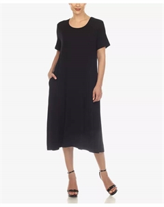 Платье свободного кроя с вырезом крест-накрест и рукавами 3/4, белый