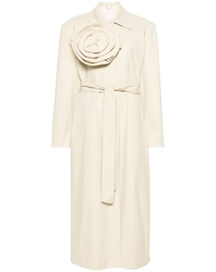 Тренч из хлопкового габардина с цветочной аппликацией, бежевый