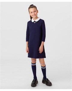 Платье вельветовое по фигуре с воротником-стойкой синее для девочки