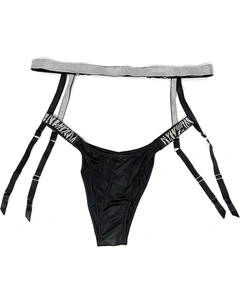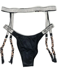 5 851 ₽ Victoria's secret Bombshell Shine Strap бразильские трусики и подвязка, Black Vs/Leopard Цвет: Черный
