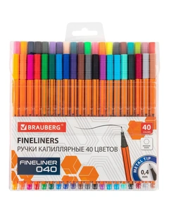 Капиллярные ручки (линеры) 40 цветов, FINE 040, шестигранные, линия 0.4 мм 144146