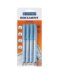 Ручки капиллярные (линеры) ЧЕРНЫЕ CENTROPEN "Document" НАБОР 4 шт., линия 0,1/0,3/0,5/0,7 мм, 2631/4, 2 2631 0404 142302