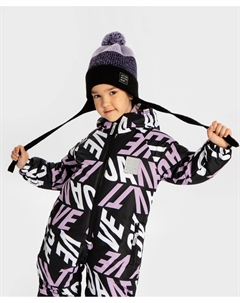 Шапка бини с ушками на завязках и с помпоном фиолетовая для девочки