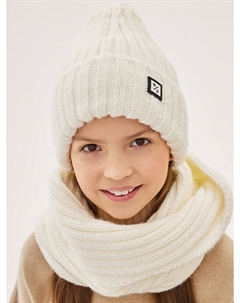 Снуд вязаный для девочки из пряжи с шерстью с резиновой нашивкой белый