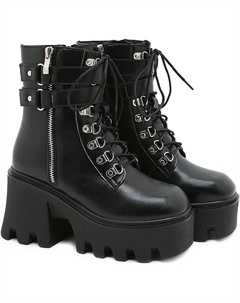Женские ботильоны на платформе с высокой шнуровкой и застежкой-молнией, панк-стиль, грубый массивный каблук, боевые военные, готические байкерские ботинки, Black