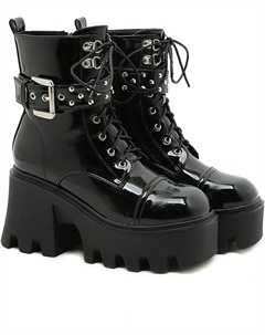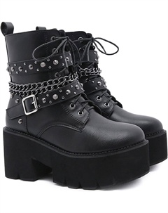 Женские ботильоны на платформе с готическим толстым каблуком, шнуровкой и заклепками, панк-ботинки в байкерском стиле, Black