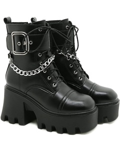 Женские готические ботильоны на платформе с высоким каблуком, шнуровкой и короткой посадкой, панковые боевые ботинки, Black