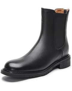 Женские ботильоны на щиколотку с удобным массивным каблуком, для вечернего образа, модные челси с круглым носком, низкий каблук, кожаные ботильоны для женщин, черные, каблук 1,1 дюйма