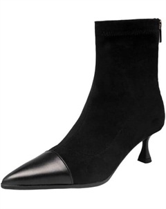 Женские ботильоны на каблуке Удобные ботинки с высоким каблуком Модные туфли с острым носком Низкий каблук Кожаные ботинки для женщин Черные 5 см